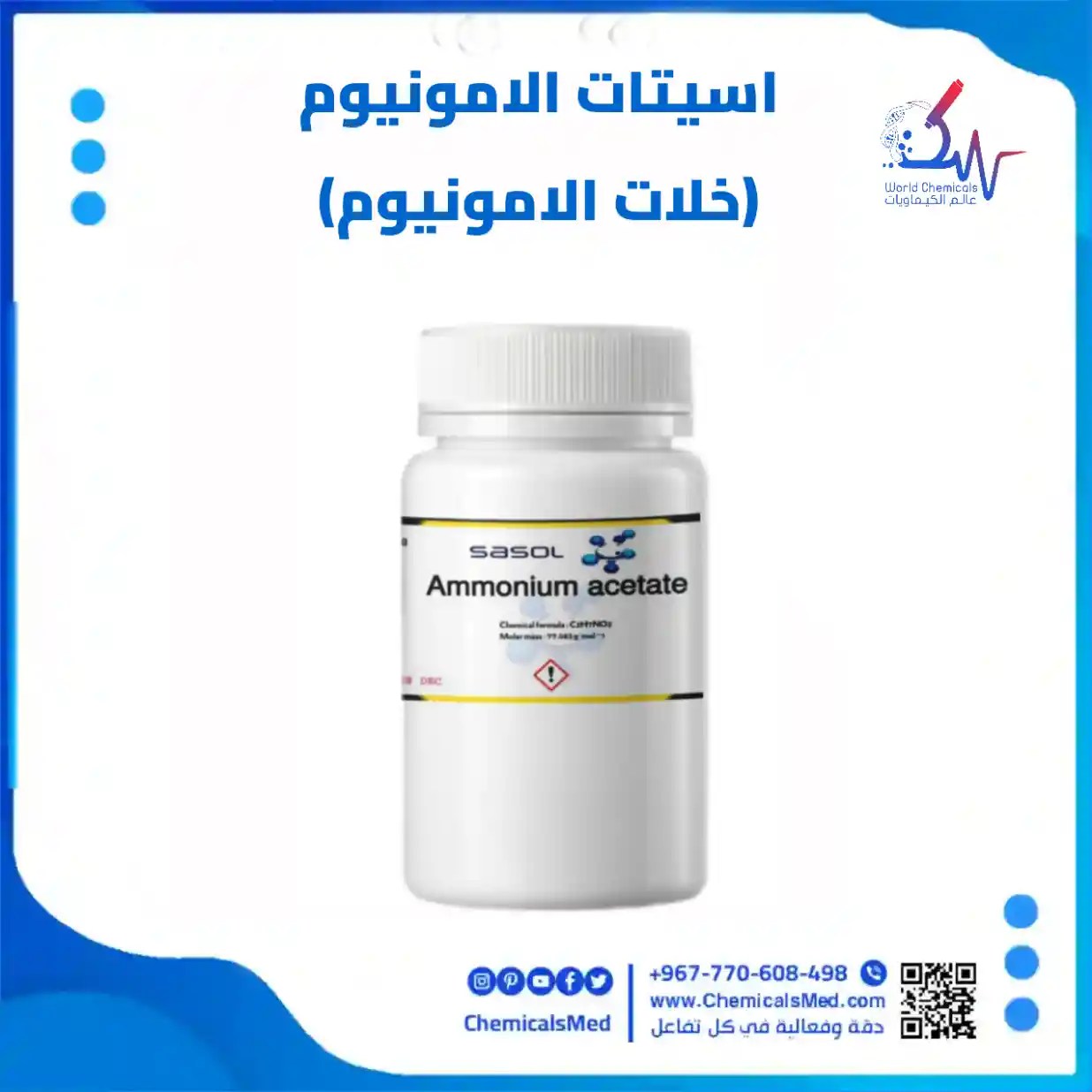 تباع خلات الامونيوم في متجر الكيمياء عالم الكيماويات في اليمن حيث يوفر هذا المتجر مجموعة كبيرة من المنتجات مثل الأملاح والكواشف المخبرية عالية الجودة