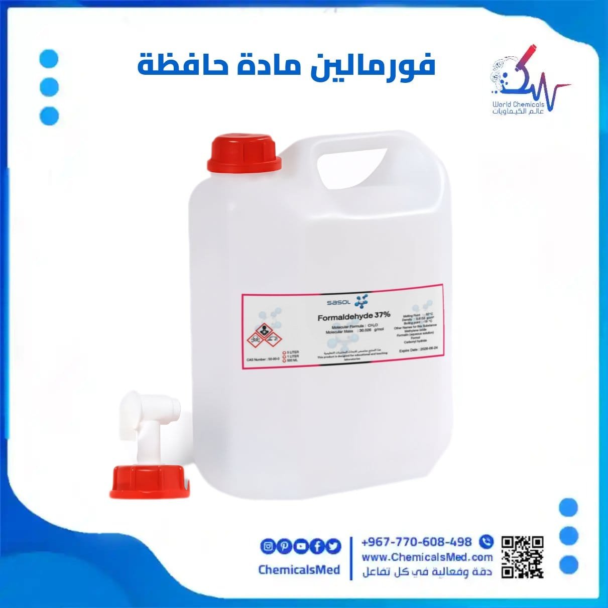 يباع في متجر عالم الكيماويات في اليمن حيث يوفر هذا المتجر مادة فورمالين للبيع المادة الحافظة ذات جودة عالية