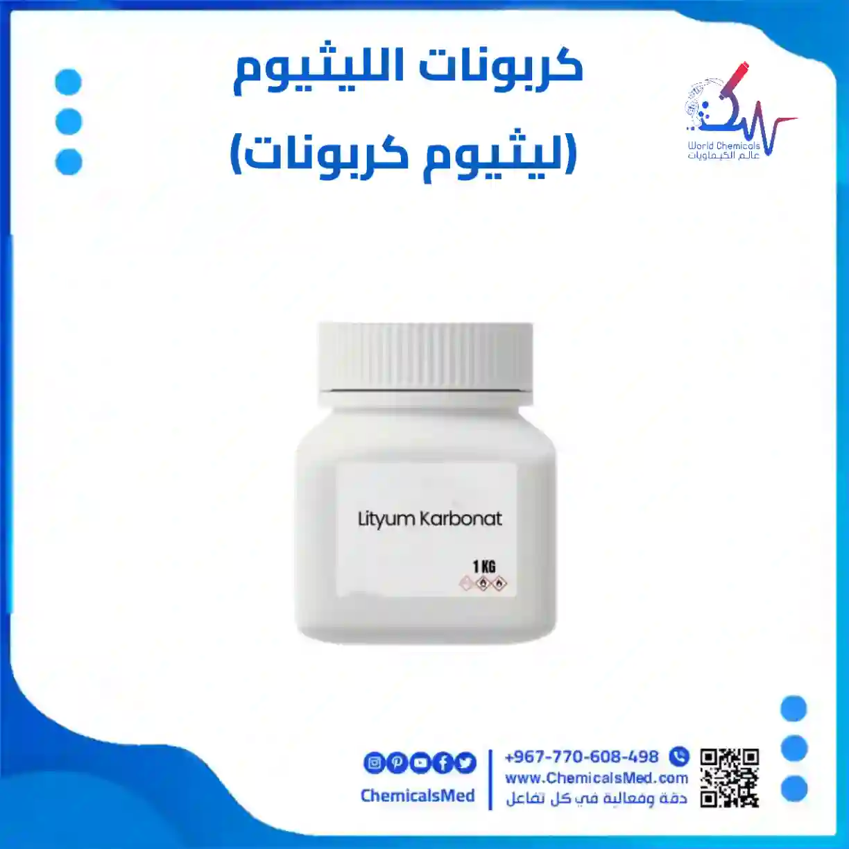 يباع كربونات الليثيوم في متجر عالم الكيماويات في صنعاء اليمن حيث يوفر المتجر منتجات المركبات الكيميائية عاليه الجودة .