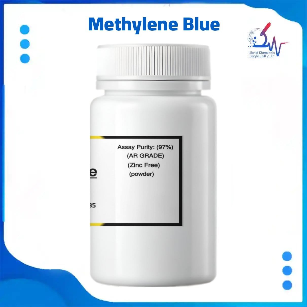 مسحوق أزرق الميثيلين (Methylene Blue) هو مركب عضوي يأتي على شكل مسحوق بلوري أخضر داكن يتحول عند إذابته في الماء إلى محلول أزرق كثيف ومميز. صيغته الكيميائية هي C₁₆H₁₈ClN₃S. تاريخيا كان يستخدم كدواء لعلاج الملاريا والتسمم بالسيانيد.