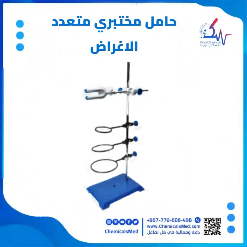 حامل التجارب متعدد الاغراض او ما يعرف بالستاند المخبري هو العمود الفقري لاي تجربة كيميائية وهو بمثابة الهيكل الاساسي الذي تبنى عليه كافة الاجهزة والزجاجيات هو عبارة عن اداة دعم تتكون من جزئين رئيسيين قاعدة معدنية ثقيلة جدا لضمان الاستقرار وقضيب معدني عمودي يتم تثبيته عليها